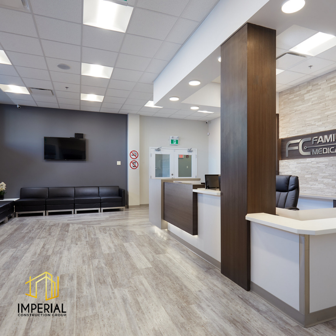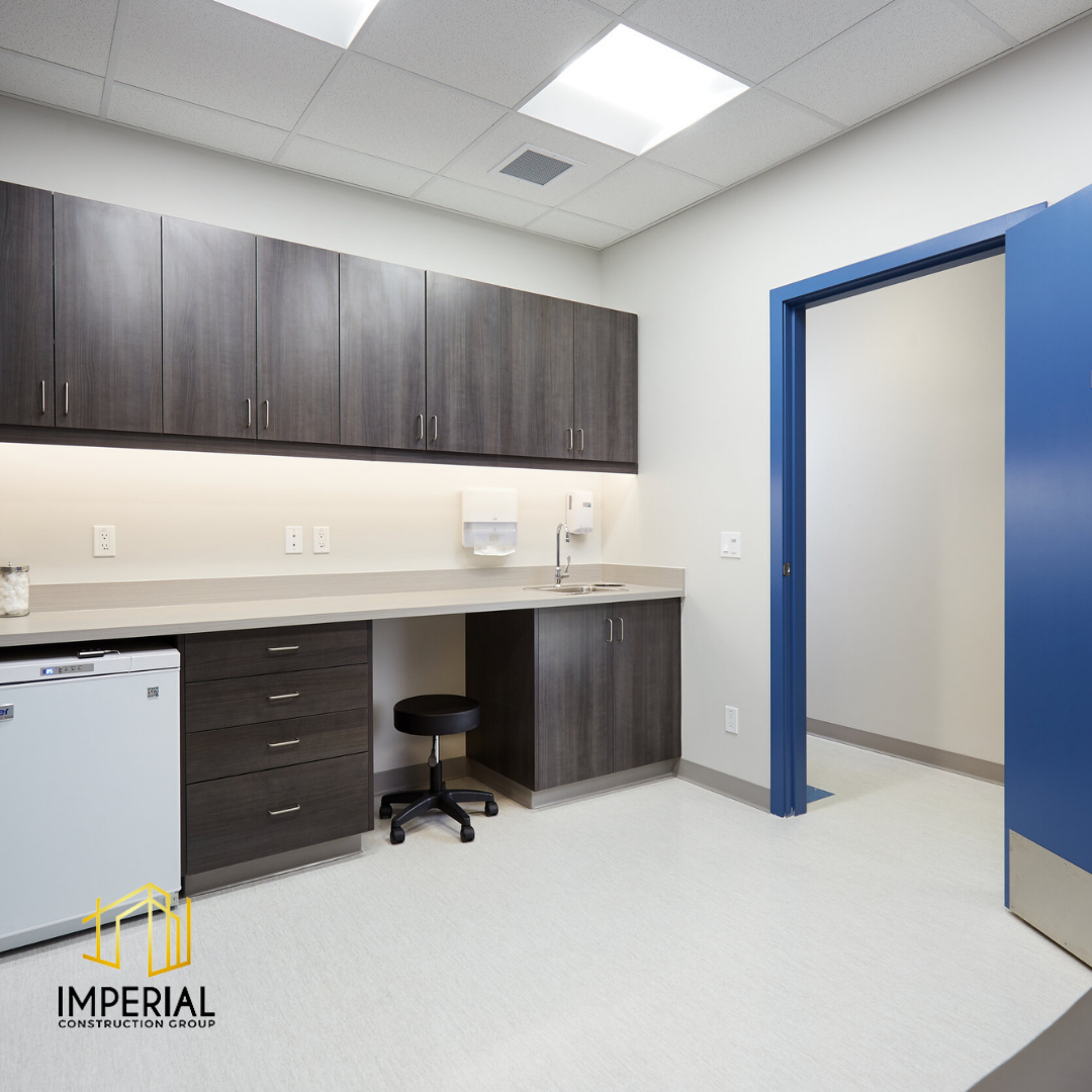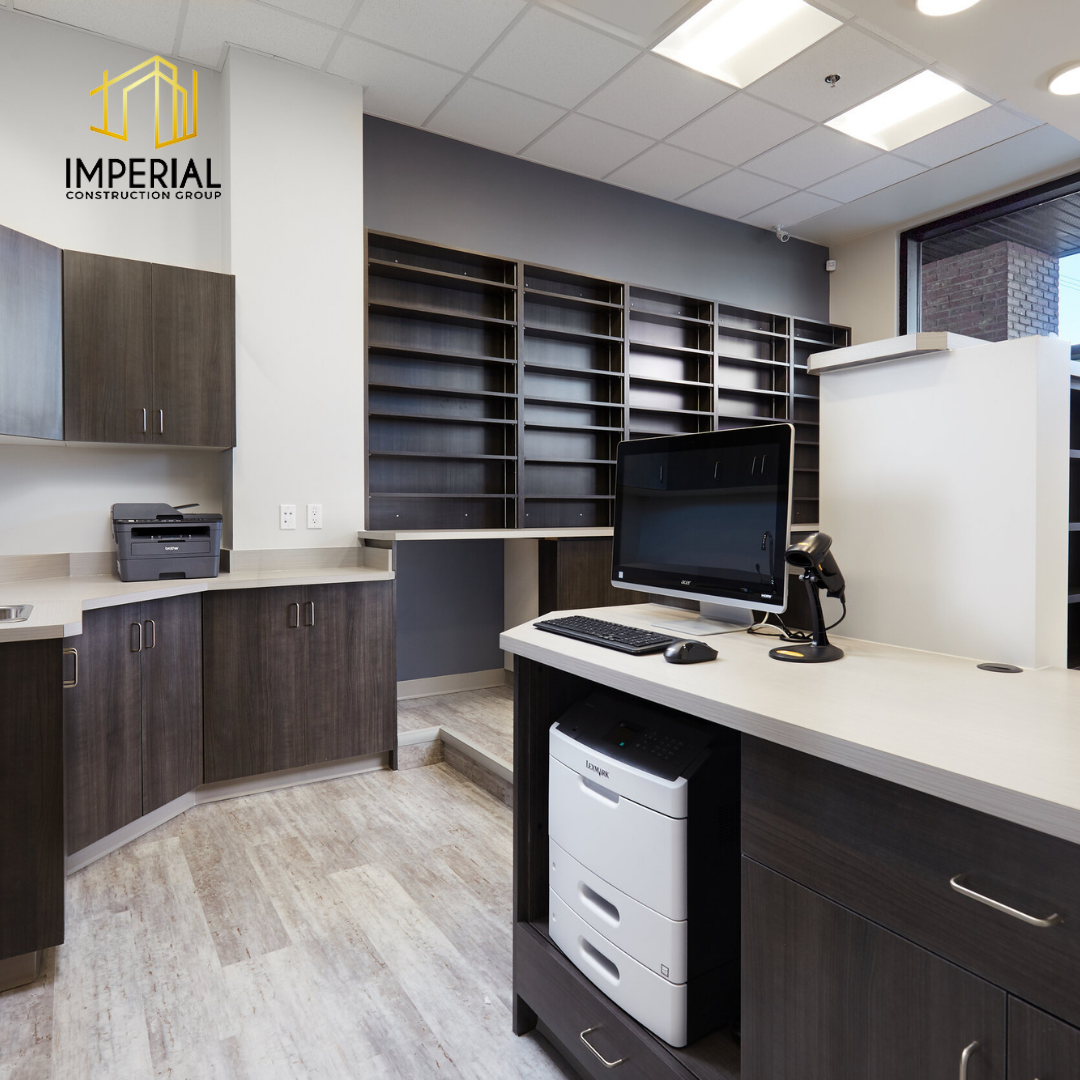 Imperial Construction Group starts each medical centre renovation with the goal of providing a one-stop solution for all patient needs. This is achieved through a thoughtful design layout that enhances the clinic experience and allows the patients to entrust their health to a clinic that epitomizes care and comfort. This 3,000 sq ft project added a large, welcoming reception area for the walk-in as well as 6 examination rooms, and offices. Other new and expanded spaces of this medical centre include a pharmacy.