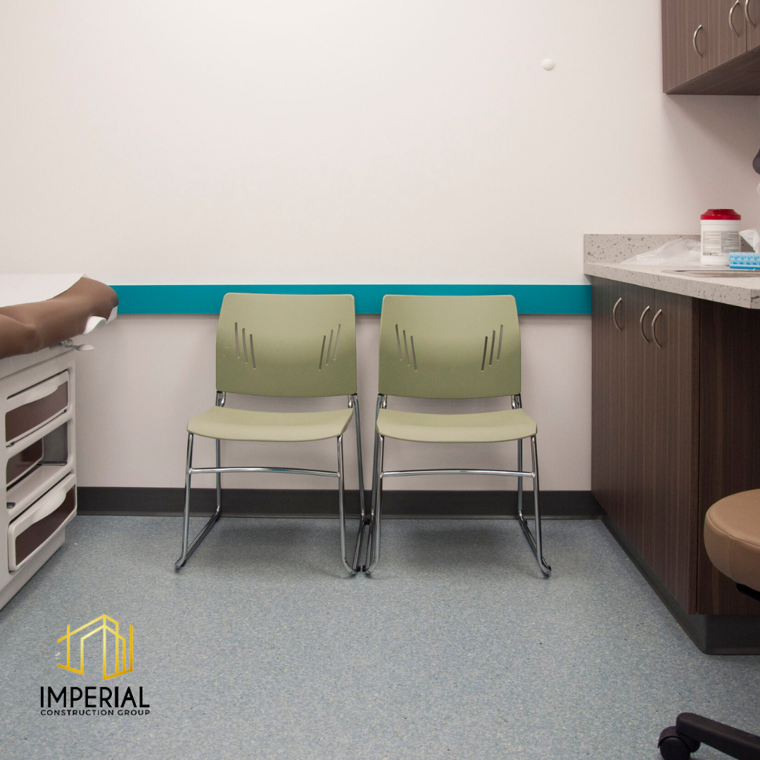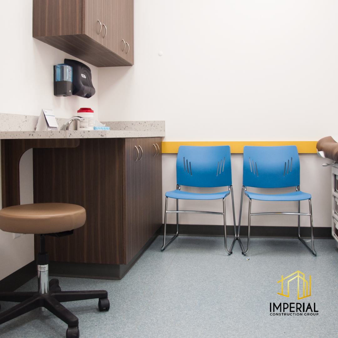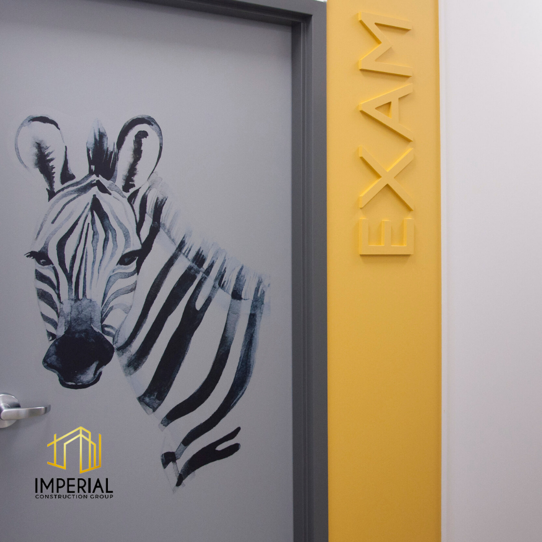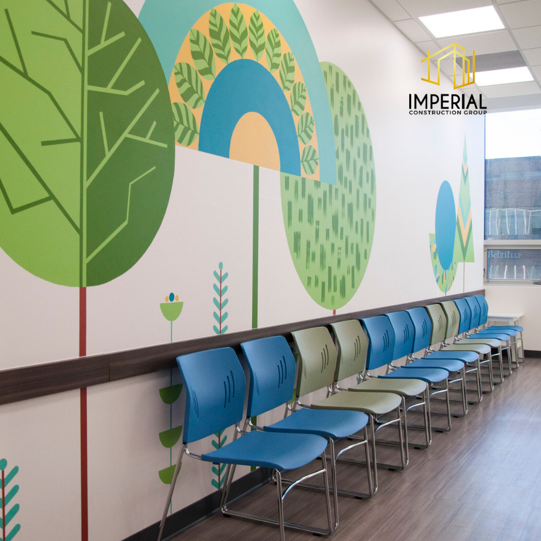 Imperial Construction Group starts each pediatric clinic renovation with the goal of providing a one-stop solution for children’s medical needs. This is achieved through a thoughtful design that enhances the pediatric clinic experience for children and their families. This allows parents to entrust their children’s health to a centre that epitomizes care and comfort. This 6,000 sq ft project added a fun, welcoming reception area for the clinic as well as 7 examination rooms and offices.
